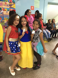 Hoje foi dia de festa, do sorvete, da fantasia, da alegria, afinal é a semana das crianças.